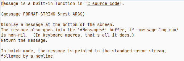 Документация по любой функции и по любой изменяемой (defcustom) переменной доступно с помощью C-x C-h [f/v]